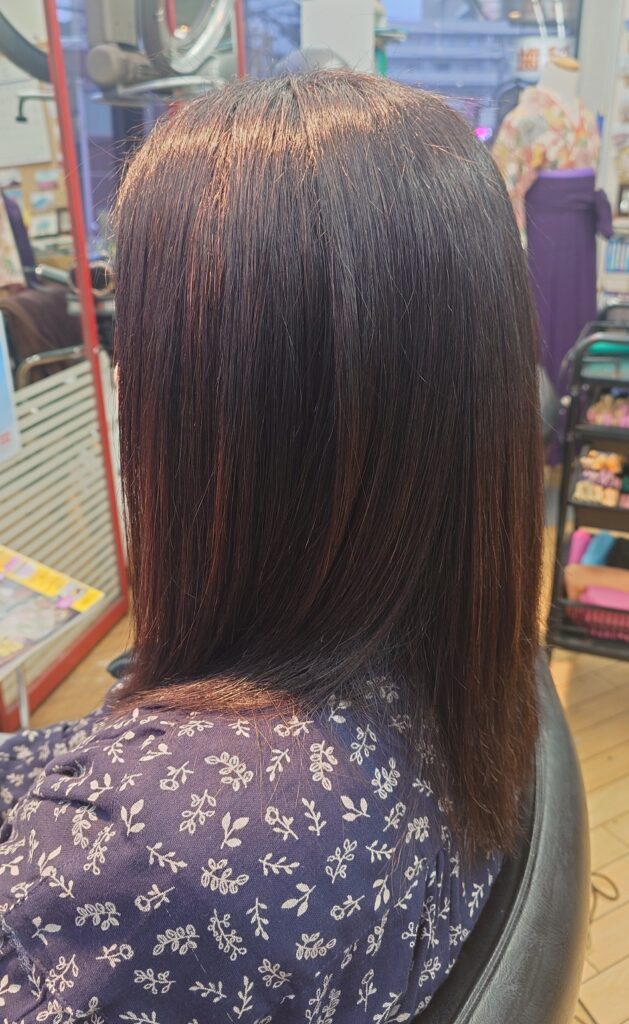 ツヤのある自然な髪色に仕上がるのが特徴です。