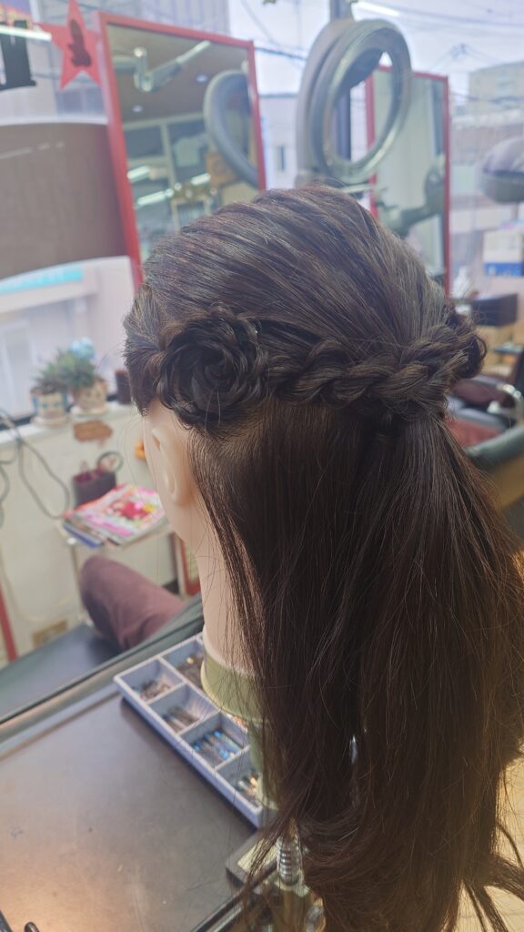 ほとんどがハーフアップです。