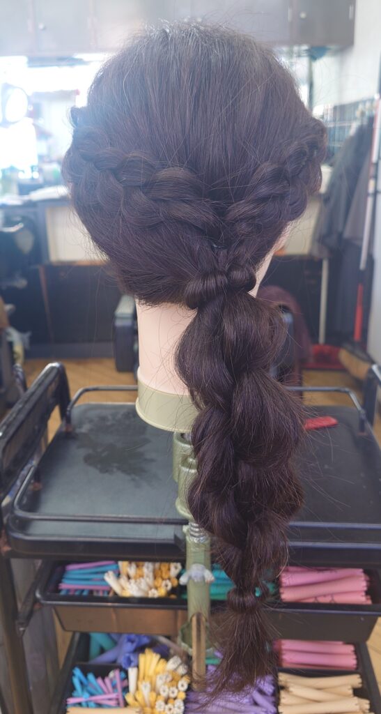 袴の着付けだけでなく、当然アップスタイルのお仕事も。