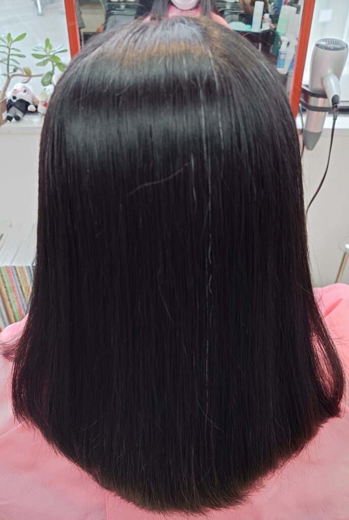 パサつきや広がりを抑え、まとまりとツヤのある髪へ導く髪質改善メニューです。 ダメージをケアしながら、扱いやすい自然な仕上がりになります。