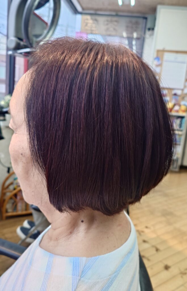 本日 ご来店のお客様。ボブスタイルにカットしてマニキュアを施術 全体的に毛髪が乾燥してパサついておられたので、髪質改善トリートメントを施術。艶さらの髪に仕上げさせていただきました。 -