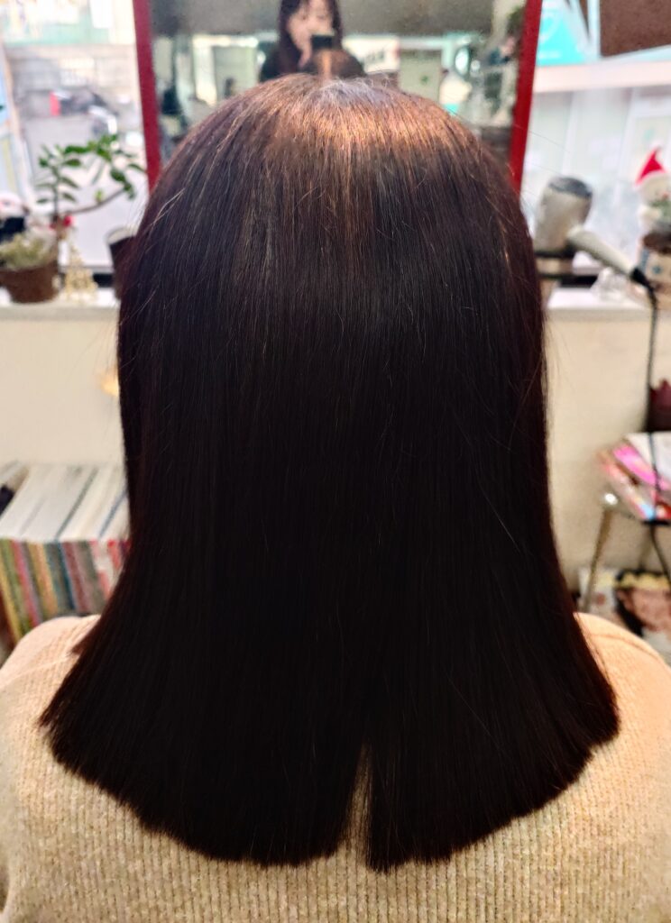 数年前からご来店くださっているお客様。本当はカラーもさせていただきたいのだけど、まだ、白髪が少ないとのことで、フロントと表面だけセルフカラーをされています。一見 痛みのない髪なのですが、触ってみる(特にシャンプーの時)と傷んでいるのが ... -